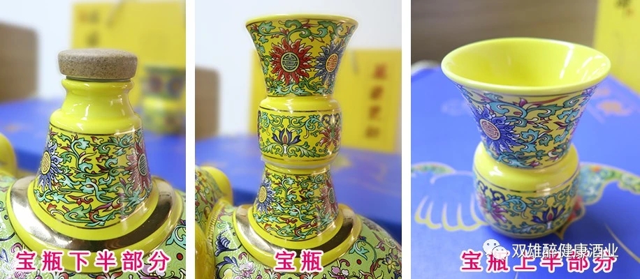 雙雄醉吉象如意酒和萬象更新酒上的寶瓶,下半部分為出酒口,上半部分為瓶蓋,同時(shí)也是一個(gè)小酒杯,巧奪天工的設(shè)計(jì),即保持了吉象的美觀,又增加了實(shí)用性。