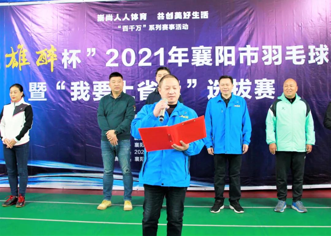 湖北雙雄醉大客戶服務部總監(jiān)李愛軍致辭,雙雄醉成立之初,便以“全民樂享健康生活新方式”為企業(yè)愿景和“共建、共生、共享”的經營理念,兩年多來,公司不斷參與各種有益身心的健康活動。此次贊助2021年襄陽市羽毛球聯(lián)賽暨“我要上省運”選拔賽,正是踐行公司愿景,號召全社會都能積極健身、提高身體素質,營造健康生活新方式社會氛圍的實際行動,石花雙雄醉愿意為提升襄陽人民的身體健康和幸福生活指數(shù)奉獻力量。