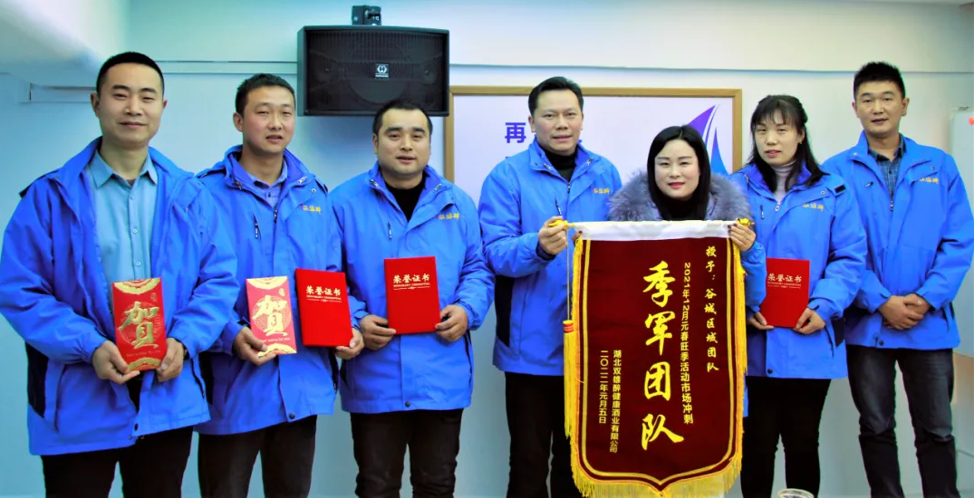 2022年1月5日,雙雄醉健康酒業(yè)全員齊聚在襄陽營銷總部召開1月營銷工作會議。表彰先進(jìn)樹典型,凝聚力量再出發(fā),大會對一階段表現(xiàn)優(yōu)秀的區(qū)域和個人進(jìn)行表彰。讓我們懷著激動的心,掀開歷史嶄新的一頁,為英雄們喝彩!