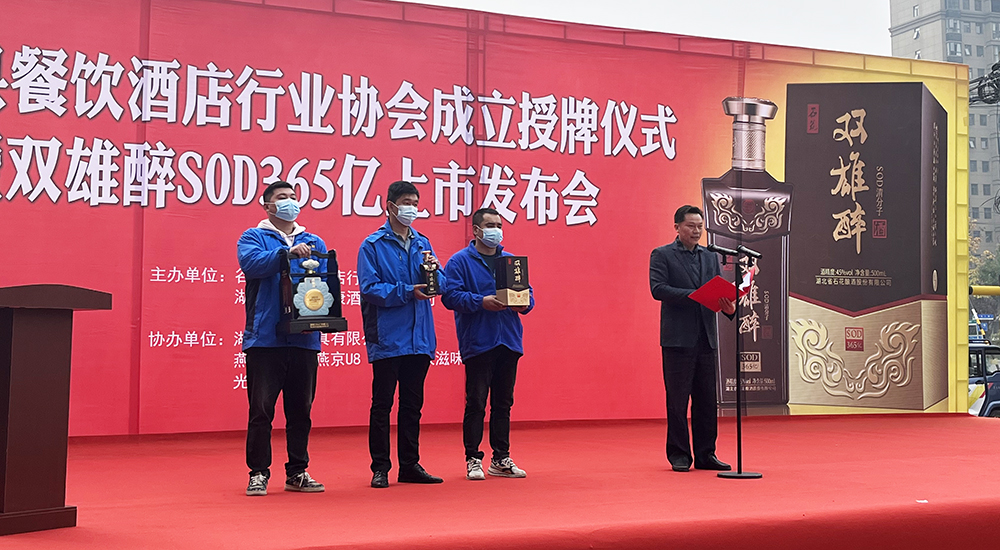 11月18日,谷城縣餐飲協(xié)會(huì)成立授牌儀式暨雙雄醉SOD365億酒上市發(fā)布會(huì)在谷城新博禧酒家舉行,谷城縣政協(xié)、市場監(jiān)督管理局領(lǐng)導(dǎo),谷城餐飲協(xié)會(huì)及來自十堰、丹江口、襄陽、棗陽、宜城、南漳等市縣餐飲協(xié)會(huì)、酒店同行等來賓近400人,見證了授牌和上市盛況。