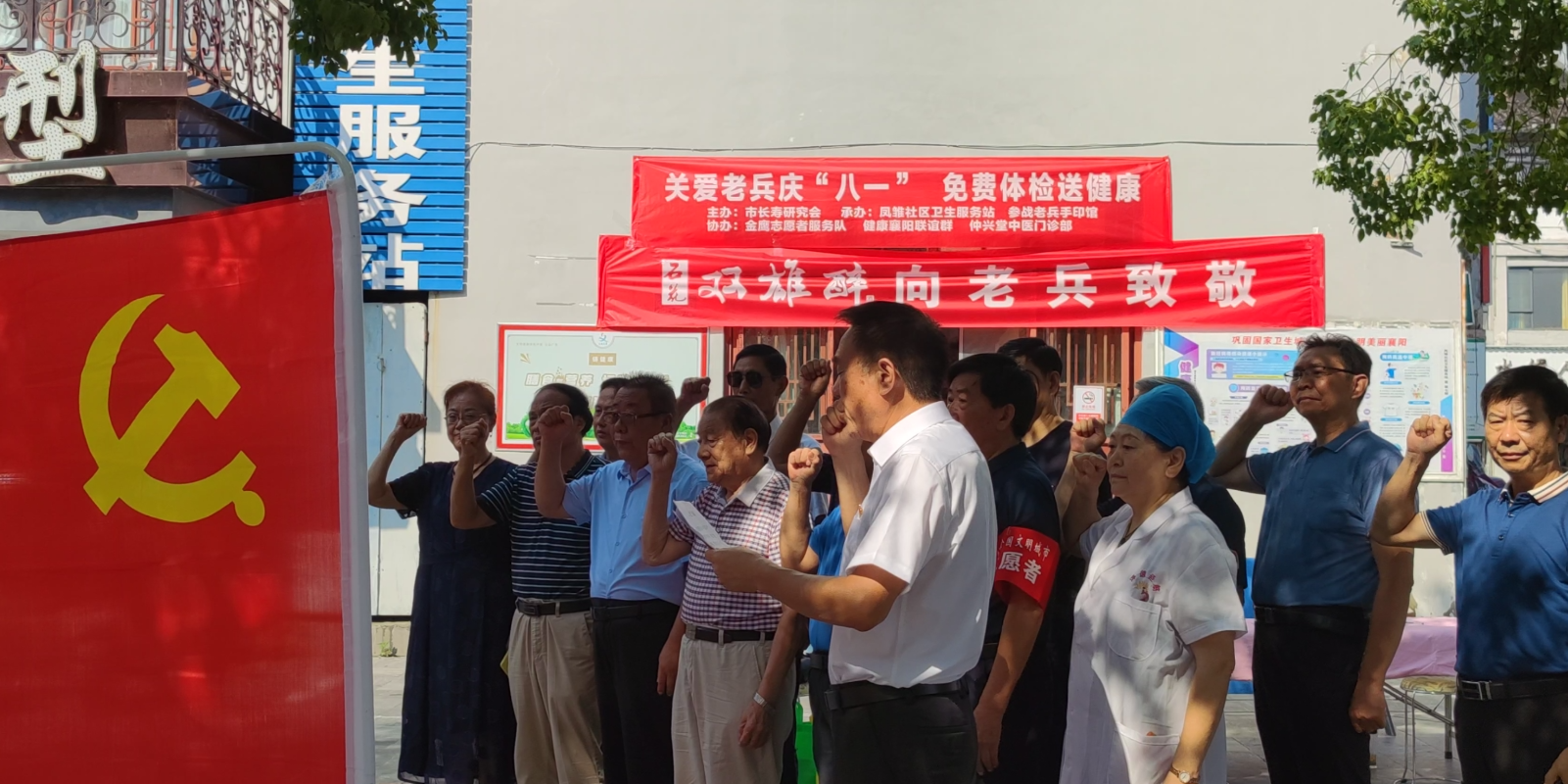 為弘揚(yáng)崇尚英雄、尊崇軍人、關(guān)愛老兵的正能量,全力營造社會(huì)化擁軍的濃厚氛圍,7月28日,在建軍96周年來臨之際,襄陽市長壽研究會(huì)組織多家愛心企業(yè)和組織“關(guān)愛老兵在行動(dòng)”活動(dòng)在鳳雛社區(qū)衛(wèi)生服務(wù)站拉開帷幕。多名參戰(zhàn)老兵參加了此次活動(dòng)。