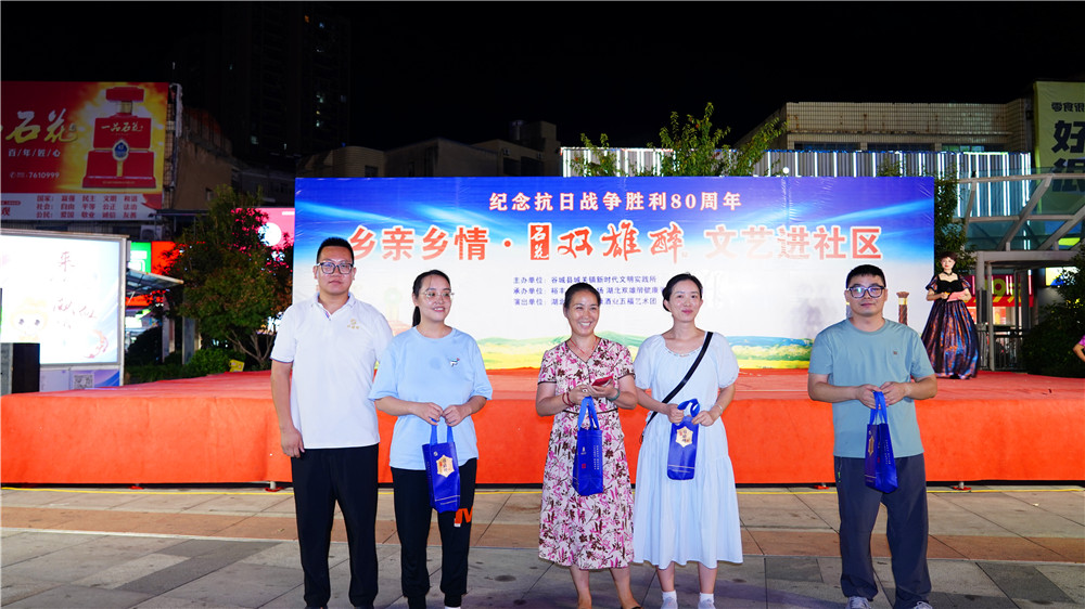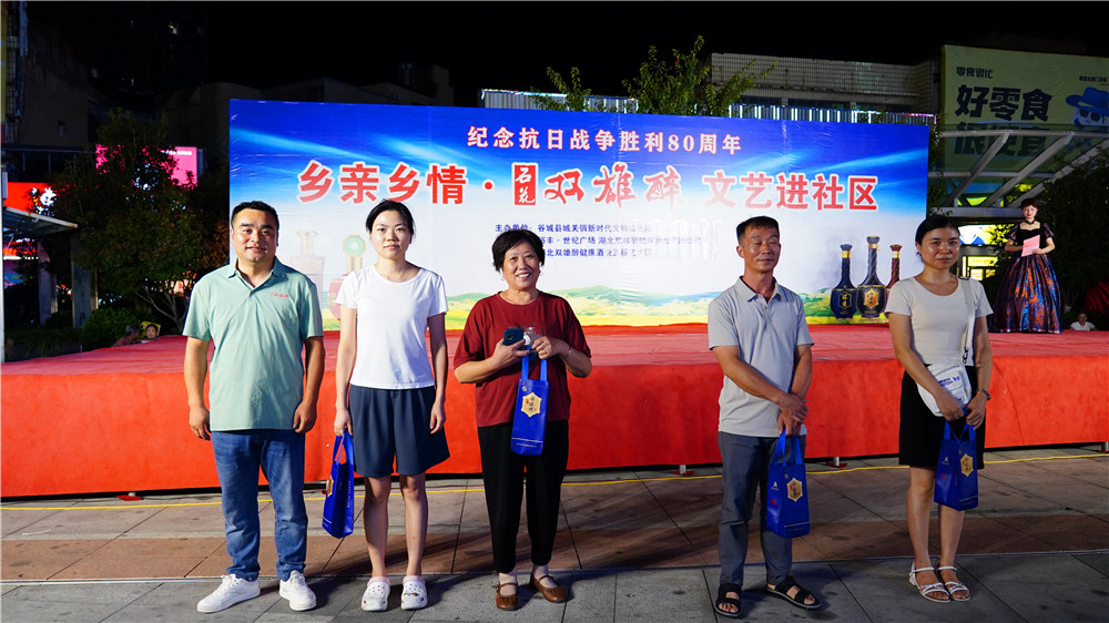 長歌抒盛世,美酒敬山河。8月30日晚,谷城裕豐?世紀(jì)廣場燈火璀璨、人聲鼎沸,鄉(xiāng)親鄉(xiāng)情?石花雙雄醉紀(jì)念抗日戰(zhàn)爭勝利80周年文藝進(jìn)社區(qū)演出在此圓滿舉行,悠揚(yáng)旋律與熱烈掌聲交織,吸引上千名周邊居民駐足觀看,共憶崢嶸歲月、共賞文化盛宴。此次活動(dòng)由谷城縣城關(guān)鎮(zhèn)新時(shí)代文明實(shí)踐所主辦,裕豐?世紀(jì)廣場和石花雙雄醉承辦。